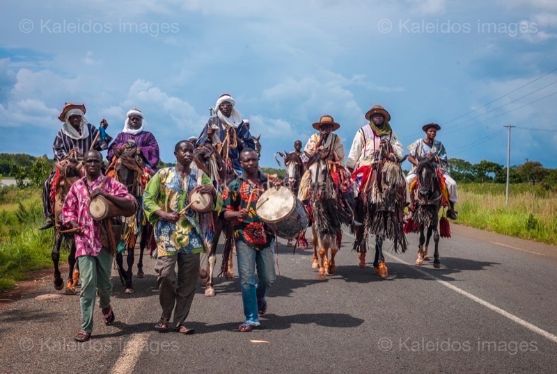 Djougou, Benin. To earn some money, the horsemen of Djougou create small shows for the rare tourists in the region. Here they are on their way to the "Motel du Lac" in Djougou.