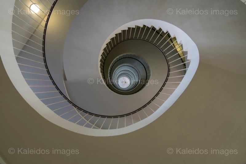 Düsseldorf-Mörsenbroich, Germany. Ehemaliges ARAG-Hauptverwaltungsgebäude. The spiral staircase in the former main administration building of the insurance company ARAG (Allgemeine Rechtsschutz-Versicherungs AG).