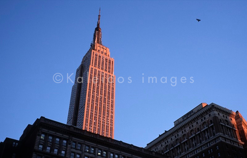 New York City, USA. The Empire State Building. Built between 1929 and 1932, the Art Deco Skyscraper was opened on May 1st 1931. The building is situated at 350 5th avenue in Midtown Manhattan. It was designed by architect William Frederick Lamb of Shreve, Lamb and Harmon. Height is 381 meter and 443,2 meter with antenna. There are 102 floors. It is without doubt one of New York's most famous landmarks.