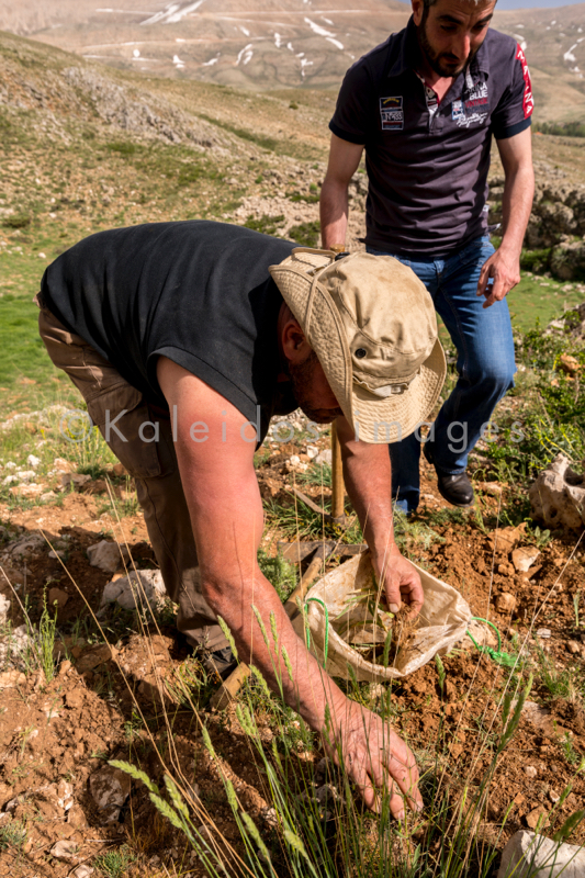Al Arz, Lebanon. Doctor Youssef Tawk is passionate about protecting the environment and saving the lebanese cedar and th iris cedreti. He has already planted tens of thousands of cedar trees and saved thousands of irises. Every plant of iris cedreti has to be extracted from the soil with its rhizome to be transplanted at a later time. Dr. Youssef Tawk is helped by his family and by volunteers, like the scouts, from Bsharry.
